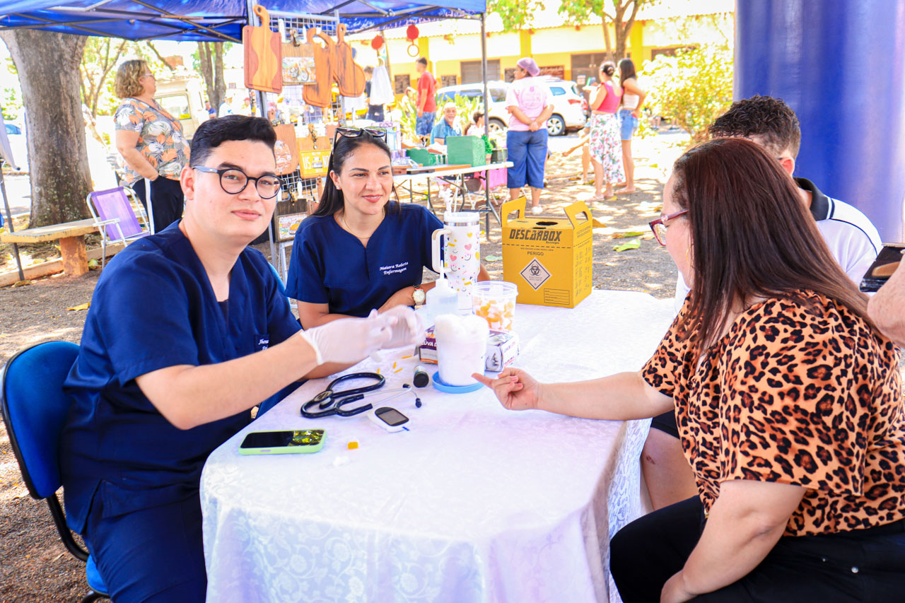 Os alunos dos cursos de Enfermagem e Farmácia da Unilins, sob supervisão da coordenadora Sabrina Zanchettin, participaram ativamente, realizando aferições de pressão arterial e testes de glicemia. A iniciativa reforçou o compromisso dos estudantes com a promoção da saúde e o bem-estar da comunidade.