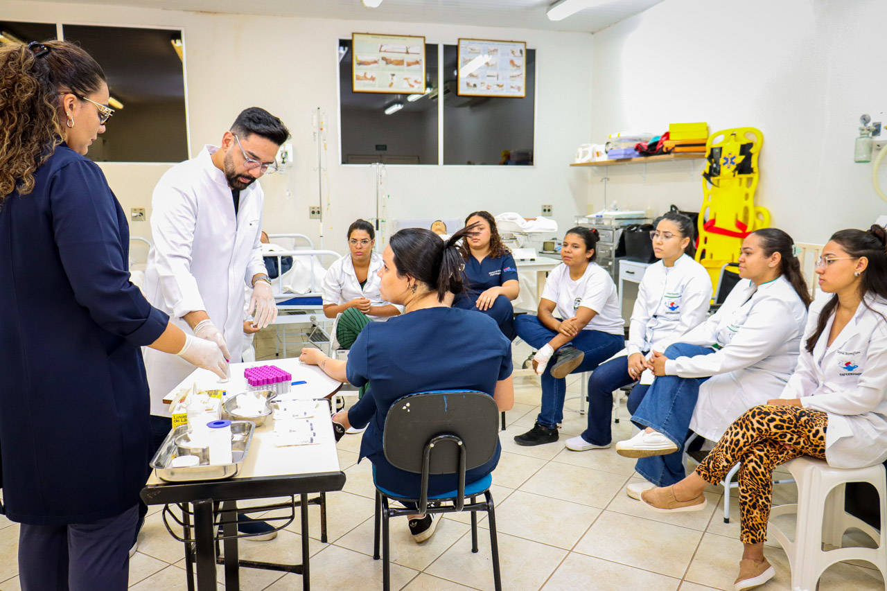 Além do domínio técnico, a aula reforçou a importância da segurança do paciente, com foco em higiene, identificação correta e cuidados com a dor e o conforto durante o procedimento.