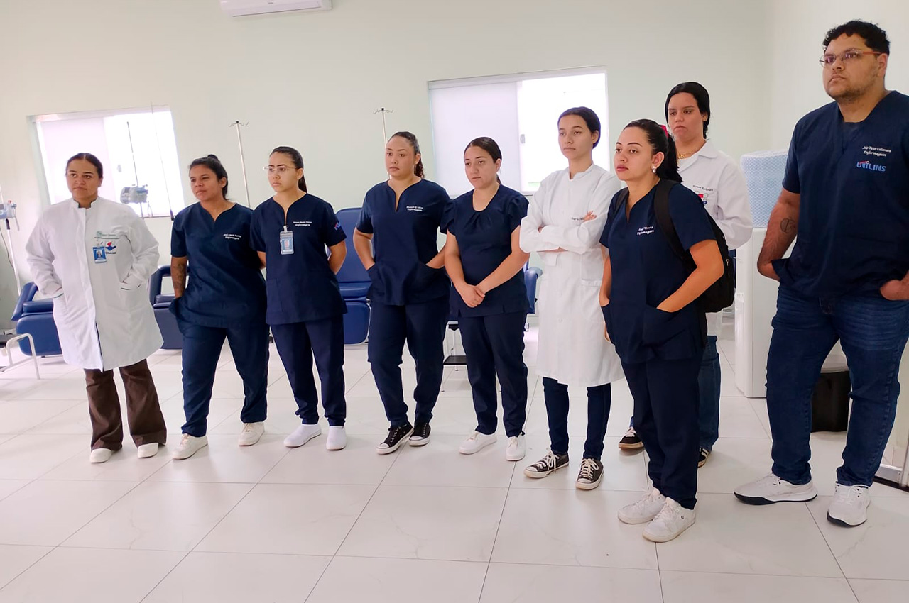 No último dia 23, os acadêmicos do curso de Enfermagem, da disciplina de Oncologia, realizaram uma visita técnica ao Ambulatório de Quimioterapia do Hospital Amaral Carvalho, em Lins, acompanhados pela docente Professora Nilva.